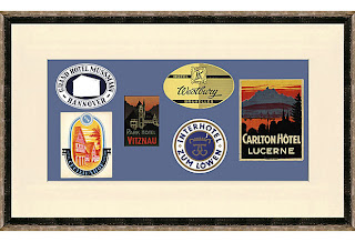 I just discovered a great idea that would make a big graphic punch for artwork on a large wall...I think this would be amazing for a boy's room over twin beds, or a grouping of 4, 6, or 8 in a family room or even a kitchen. One Kings Lane (OKL) recently featured a sale called "Traveler's Vintage Decor" with these vintage luggage travel labels from various cities around the world matted and framed in a 15x25 size. Each unique colorful label has a graphic, vintage vibe reflecting the flavor of each city or hotel. Anyone with a passion for traveling would enjoy this artful display!